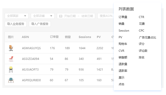 商品、销售管理、数据报表